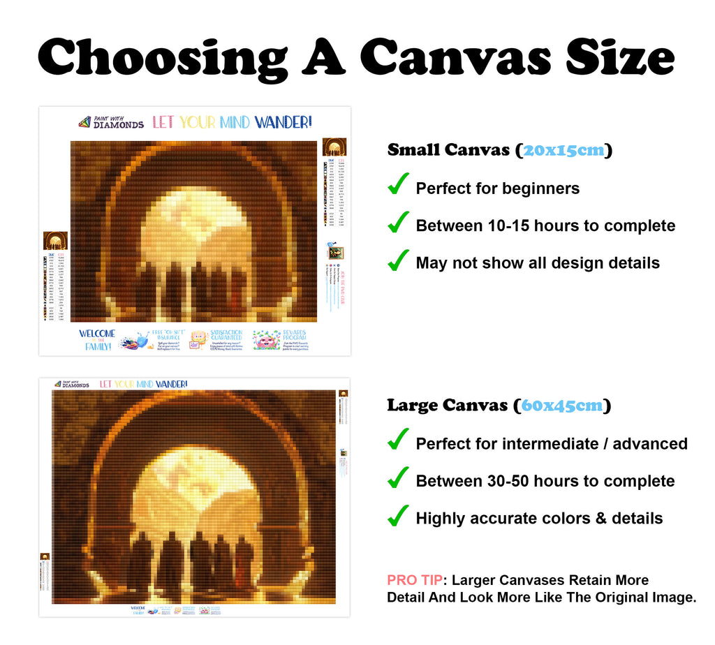 Large canvases show tiny details and all lettering, but may take up to 50+ hours to complete.