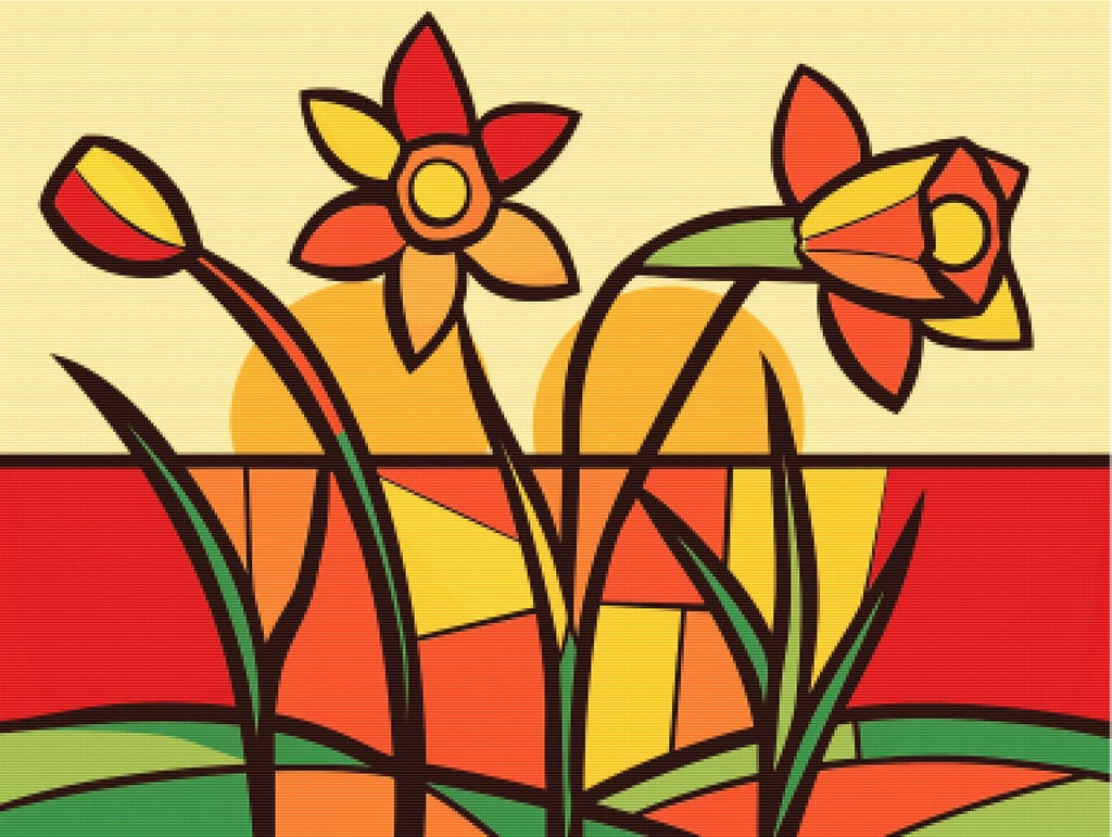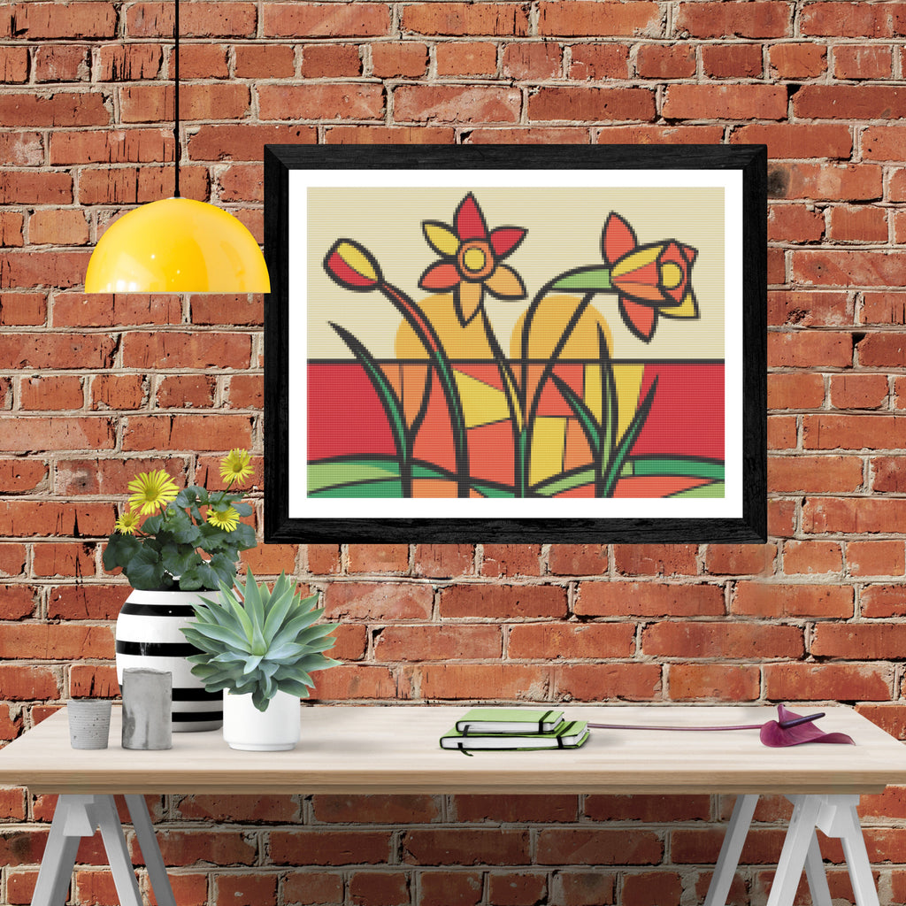 Escape into a world of vibrant colors and creative tranquility with the ‘Minimalist Daffodils’ Diamond Painting Kit. This exclusive full-drill design by artist Caleb Smith is available only at Paint With Diamonds. Let your mind unwind as you piece together shimmering diamonds to create a beautiful masterpiece.