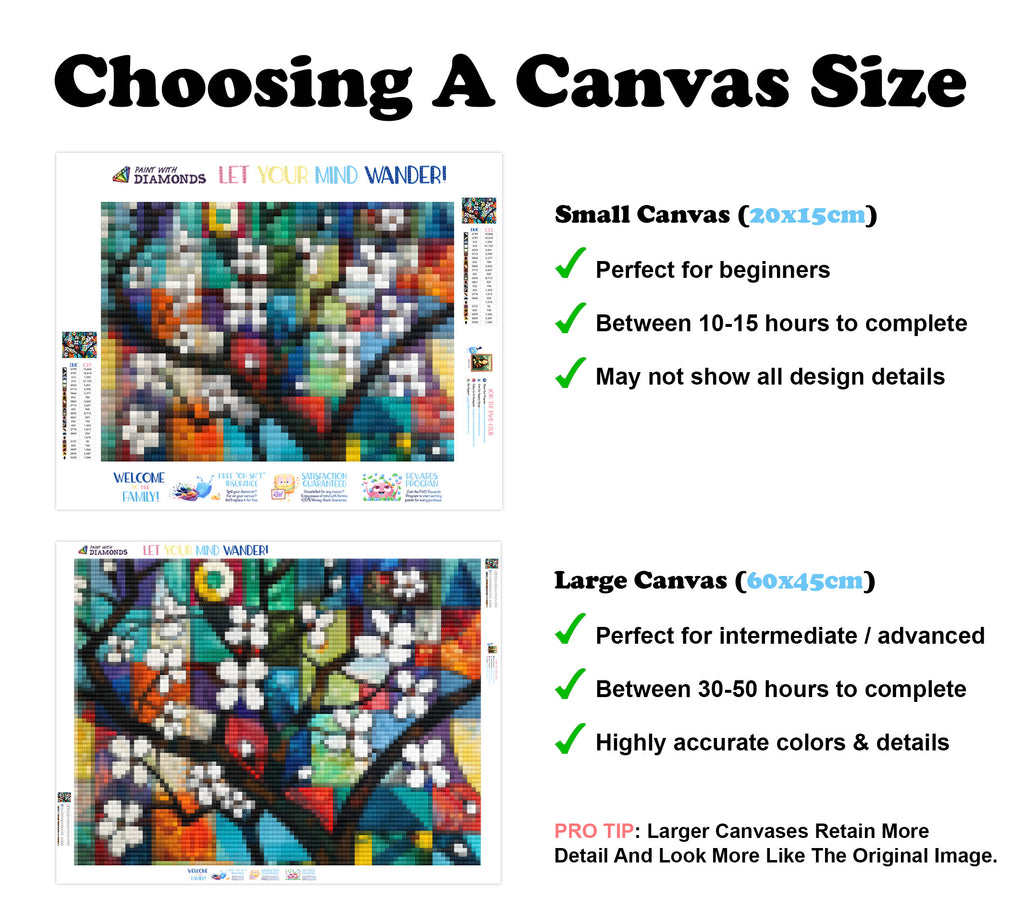 Hand-Poured Canvas Adhesive: Guaranteed to keep your diamonds securely in place for life, so your artwork will last for years to come.