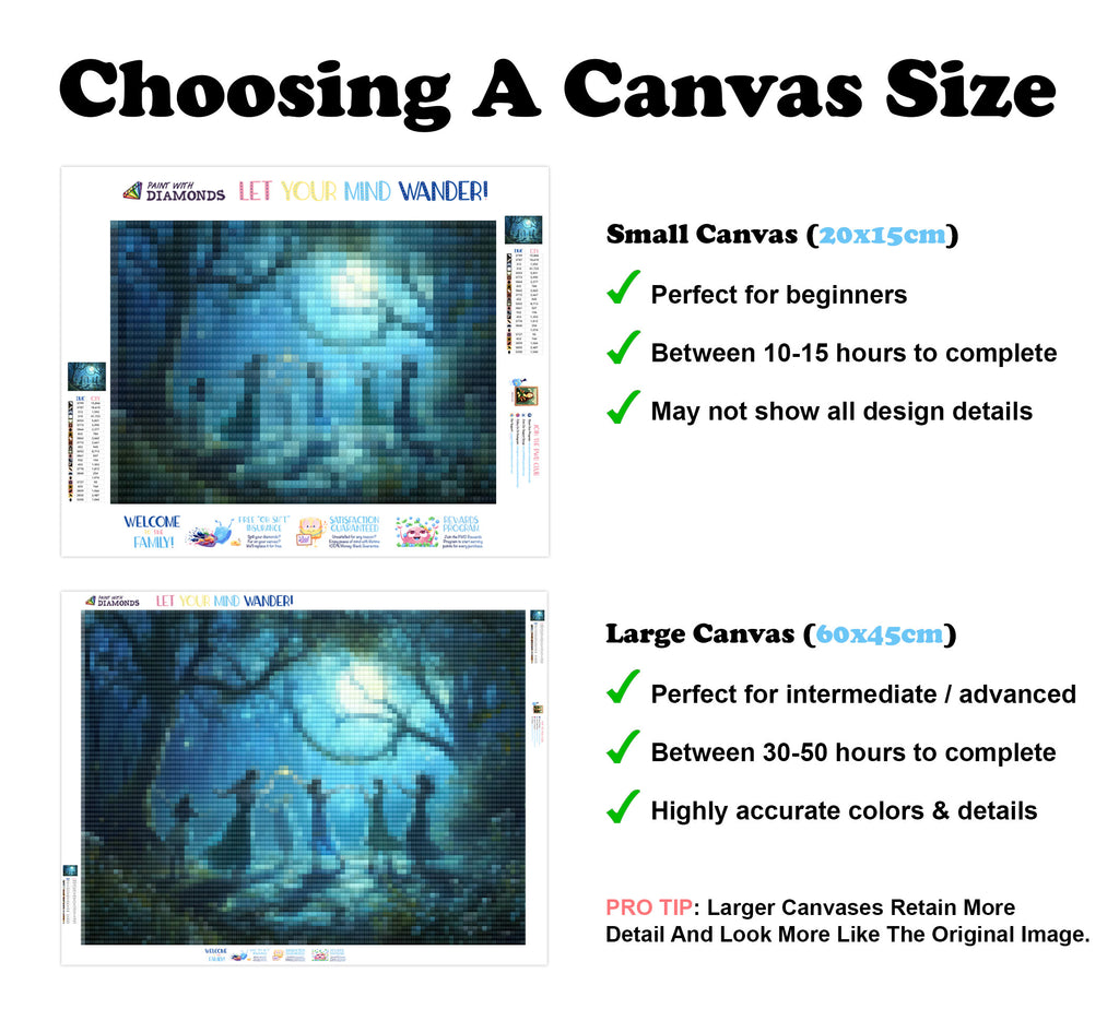 Escape into a world of vibrant colors and creative tranquility with the ‘Moonlit Fairy Ball’ Diamond Painting Kit. This exclusive full-drill design by artist Caleb Smith is available only at Paint With Diamonds. Let your mind unwind as you piece together shimmering diamonds to create a beautiful masterpiece.