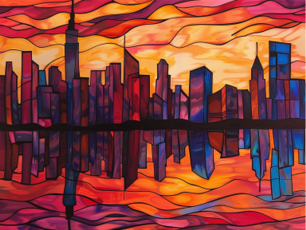 Escape into a world of vibrant colors and creative tranquility with the ‘NYC Skyline At Sunset’ Diamond Painting Kit. This exclusive full-drill design by artist Caleb Smith is available only at Paint With Diamonds. Let your mind unwind as you piece together shimmering diamonds to create a beautiful masterpiece.