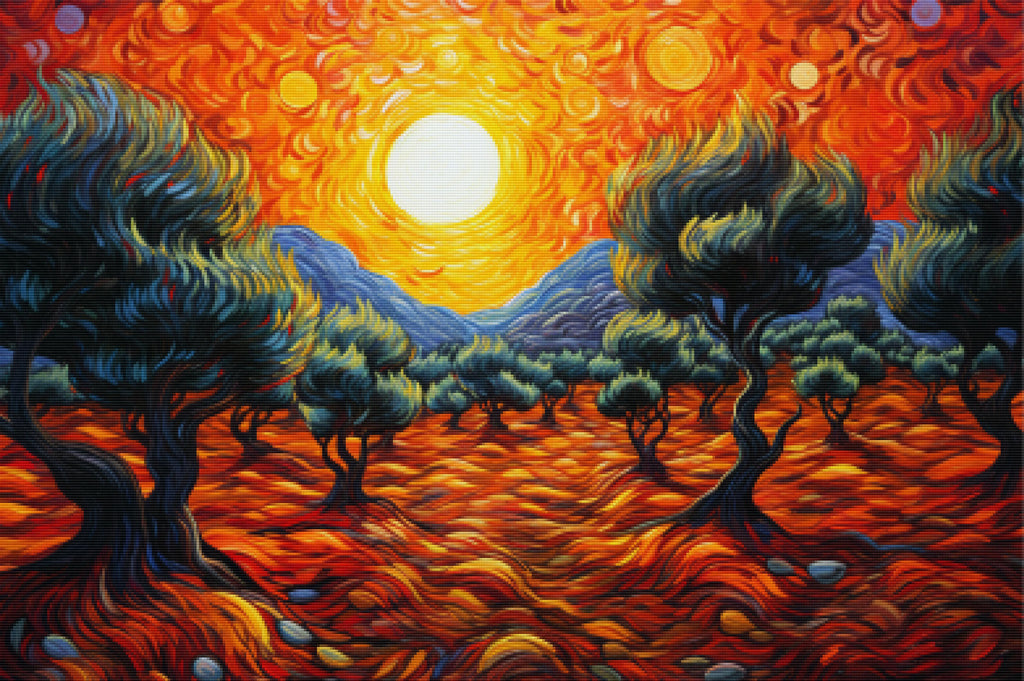 Ready to relax and create something beautiful? Add the 'Olive Grove On Fire Diamond Painting Kit to your cart today and start your journey to creative calm.