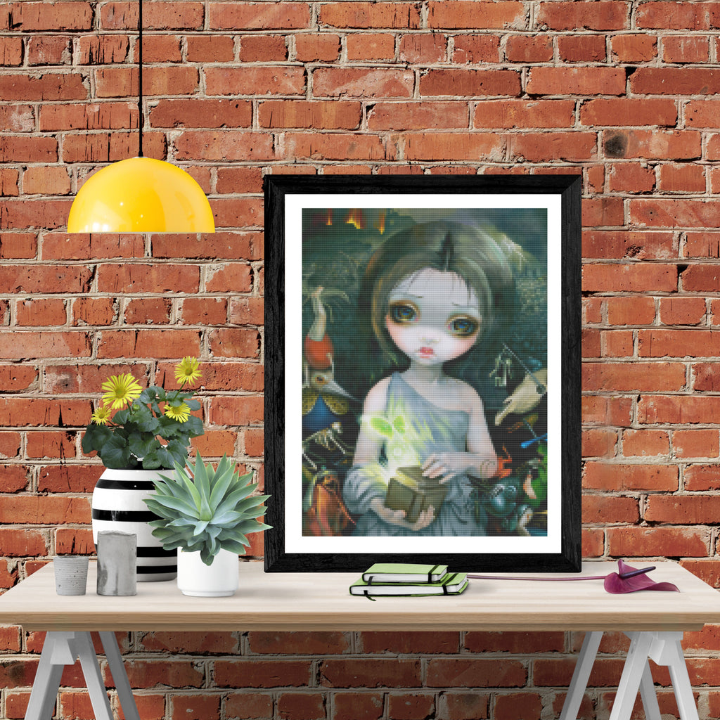 Escape into a world of vibrant colors and creative tranquility with the ‘Pandora’ Diamond Painting Kit. This exclusive full-drill design by artist Jasmine Becket-Griffith is available only at Paint With Diamonds. Let your mind unwind as you piece together shimmering diamonds to create a beautiful masterpiece.