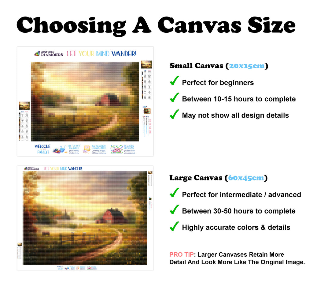 Escape into a world of vibrant colors and creative tranquility with the ‘Peaceful Countryside Morning’ Diamond Painting Kit. This exclusive full-drill design by artist Caleb Smith is available only at Paint With Diamonds. Let your mind unwind as you piece together shimmering diamonds to create a beautiful masterpiece.