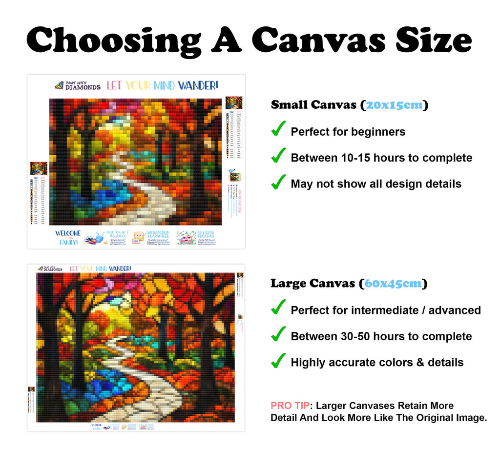 Escape into a world of vibrant colors and creative tranquility with the ‘Picturesque Autumn Pathway’ Diamond Painting Kit. This exclusive full-drill design by artist Caleb Smith is available only at Paint With Diamonds. Let your mind unwind as you piece together shimmering diamonds to create a beautiful masterpiece.