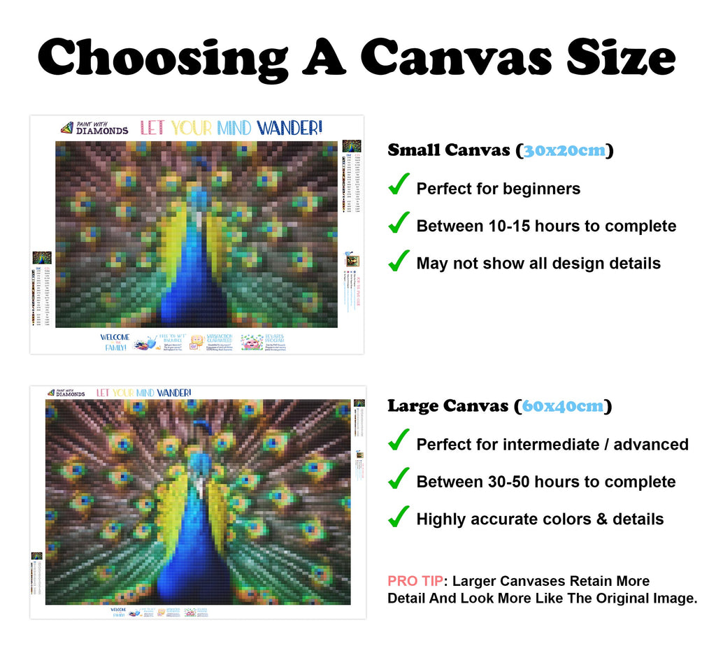 Escape into a world of vibrant colors and creative tranquility with the ‘Proud Powerful Peacock’ Diamond Painting Kit. This exclusive full-drill design by artist Caleb Smith is available only at Paint With Diamonds. Let your mind unwind as you piece together shimmering diamonds to create a beautiful masterpiece.