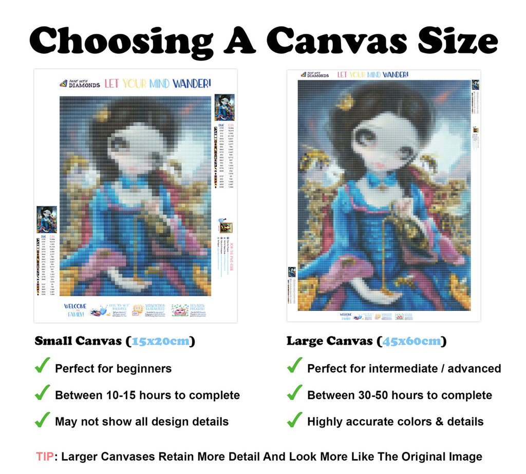 Premium Quality Diamond Painting Kit: Includes a velvety-soft adhesive canvas, eco-friendly shimmering resin diamonds, and a premium toolkit - everything you ned to get started on your next masterpiece.