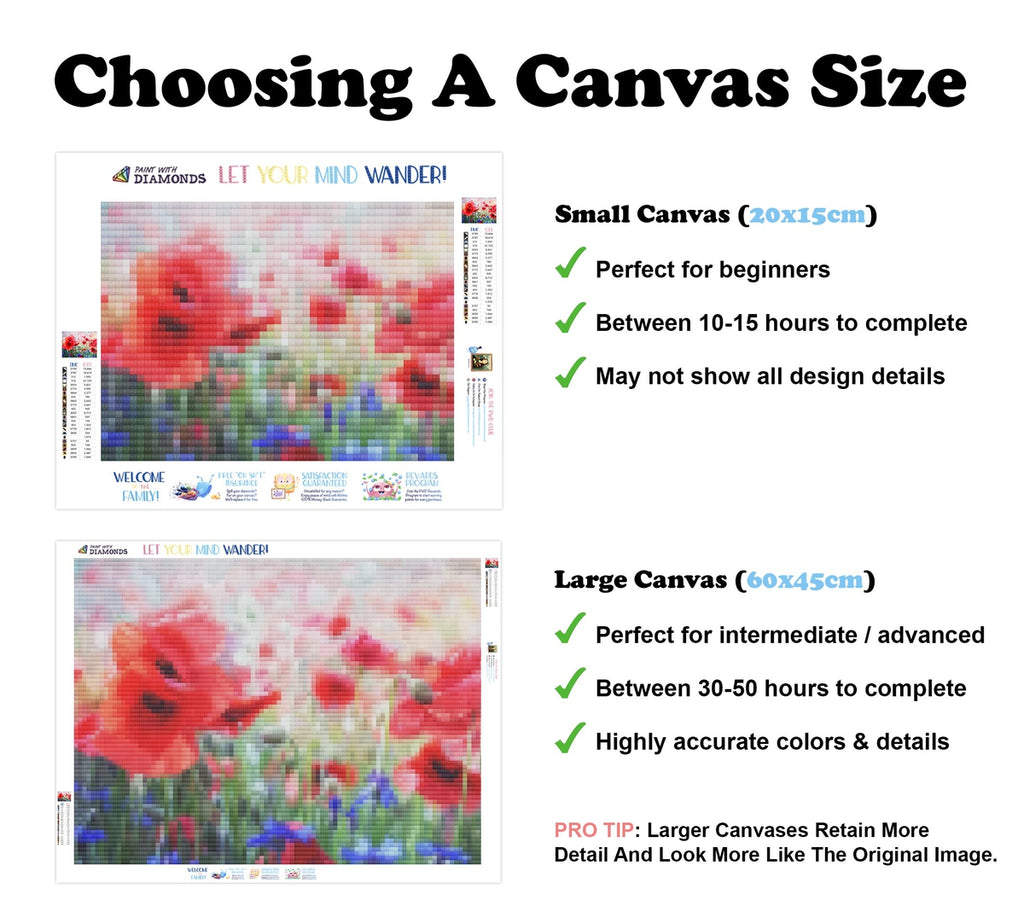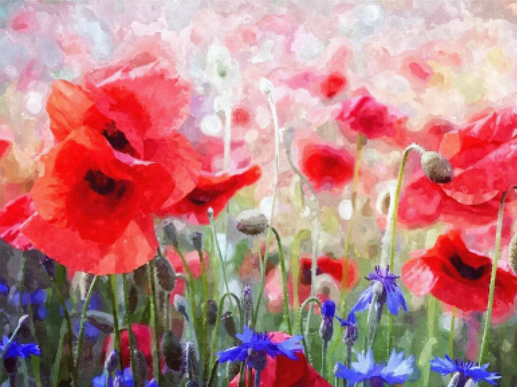Relax, unwind, and create Diamond Art! "Red Poppies and Blue Cornflowers" is now available at Paint With Diamonds® as a full-drill Diamond Painting Kit in your choice of Round or Square diamonds.