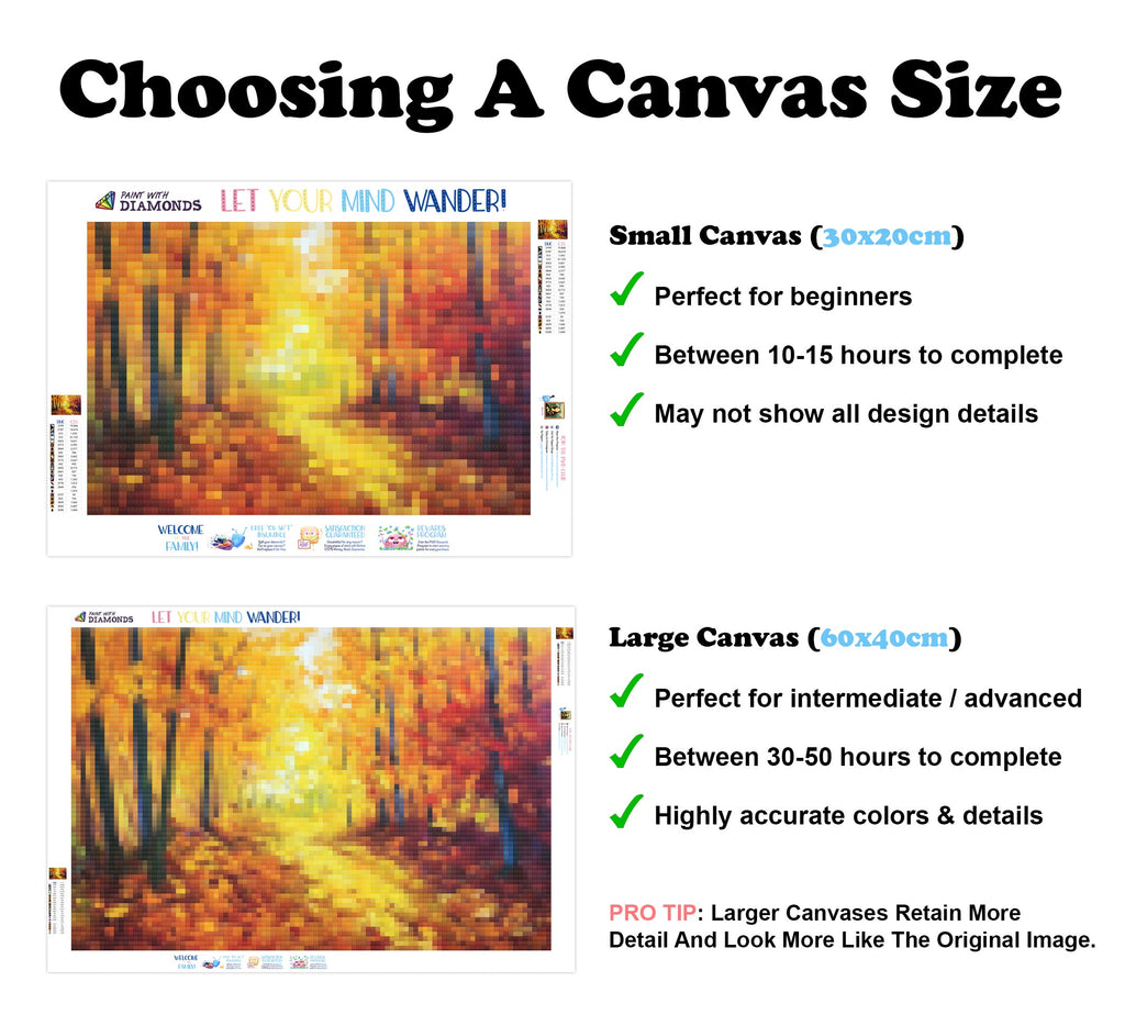 Premium Quality Diamond Painting Kit: Includes a velvety-soft adhesive canvas, eco-friendly shimmering resin diamonds, and a premium toolkit - everything you ned to get started on your next masterpiece.