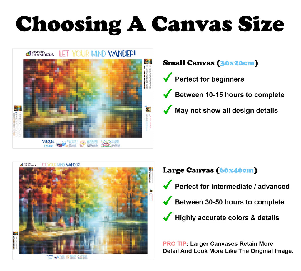 Premium Quality Diamond Painting Kit: Includes a velvety-soft adhesive canvas, eco-friendly shimmering resin diamonds, and a premium toolkit - everything you ned to get started on your next masterpiece.