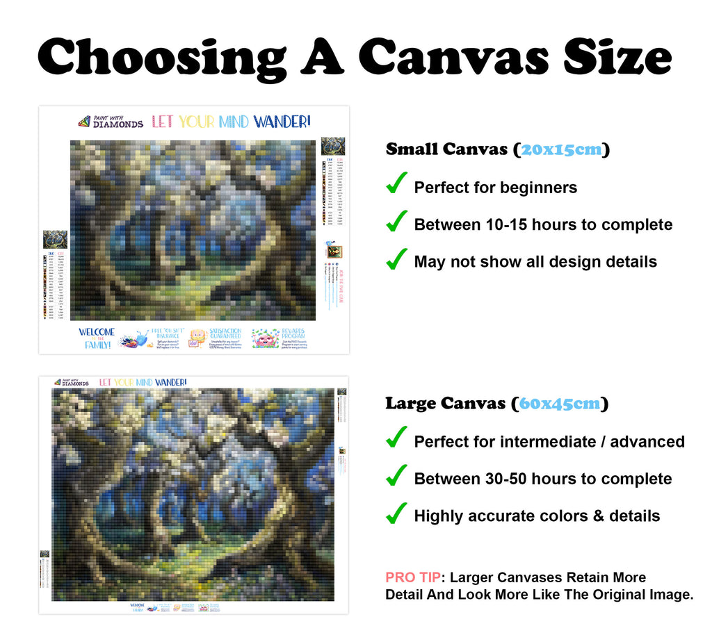 Premium Quality Diamond Painting Kit: Includes a velvety-soft adhesive canvas, eco-friendly shimmering resin diamonds, and a premium toolkit - everything you ned to get started on your next masterpiece.