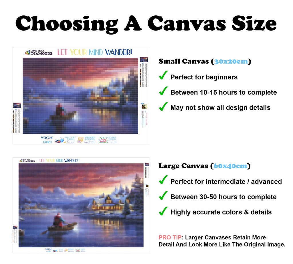Large canvases show tiny details and all lettering, but may take up to 50+ hours to complete.