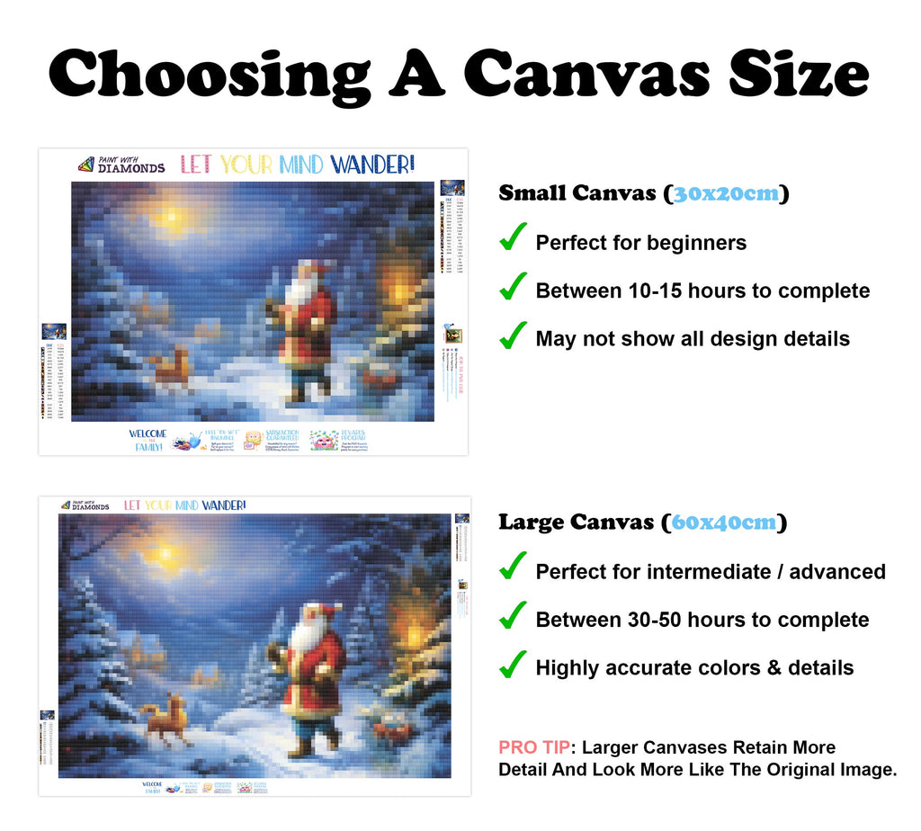 Escape into a world of vibrant colors and creative tranquility with the ‘Santa's Secret Path’ Diamond Painting Kit. This exclusive full-drill design by artist Caleb Smith is available only at Paint With Diamonds. Let your mind unwind as you piece together shimmering diamonds to create a beautiful masterpiece.
