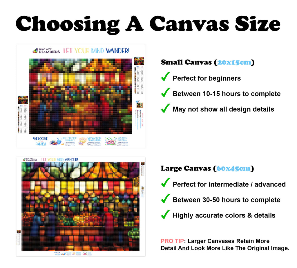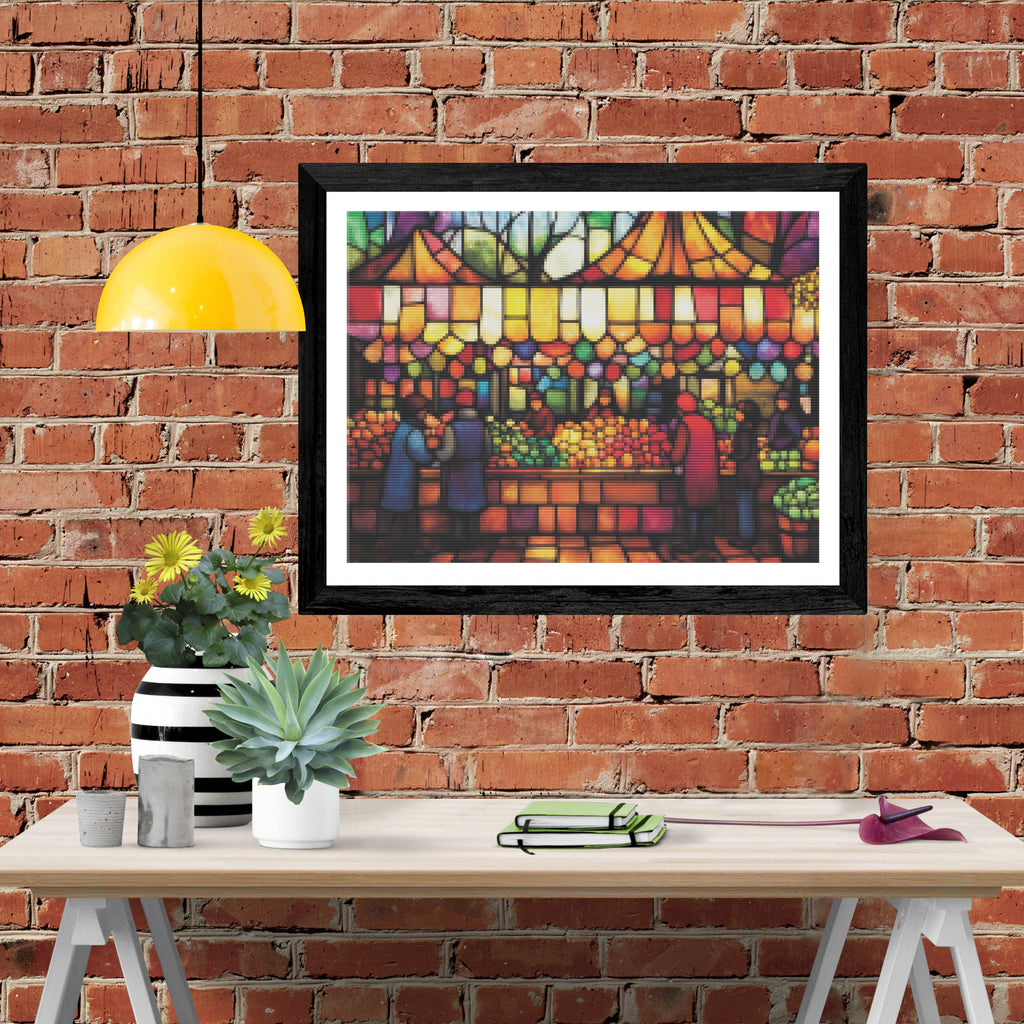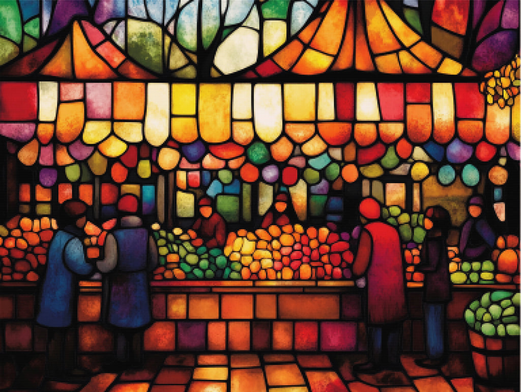 Escape into a world of vibrant colors and creative tranquility with the ‘Selling Seasonal Produce’ Diamond Painting Kit. This exclusive full-drill design by artist Caleb Smith is available only at Paint With Diamonds. Let your mind unwind as you piece together shimmering diamonds to create a beautiful masterpiece.