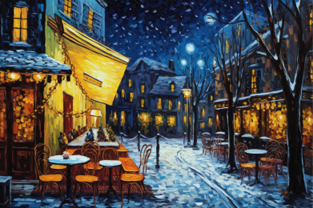 Ready to relax and create something beautiful? Add the 'Snowbound Cafe Terrace Diamond Painting Kit to your cart today and start your journey to creative calm.