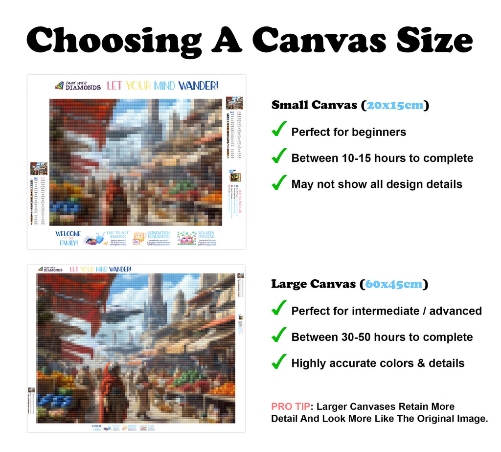 Ready to relax and create something beautiful? Add the 'Spaceport Market Day Diamond Painting Kit to your cart today and start your journey to creative calm.
