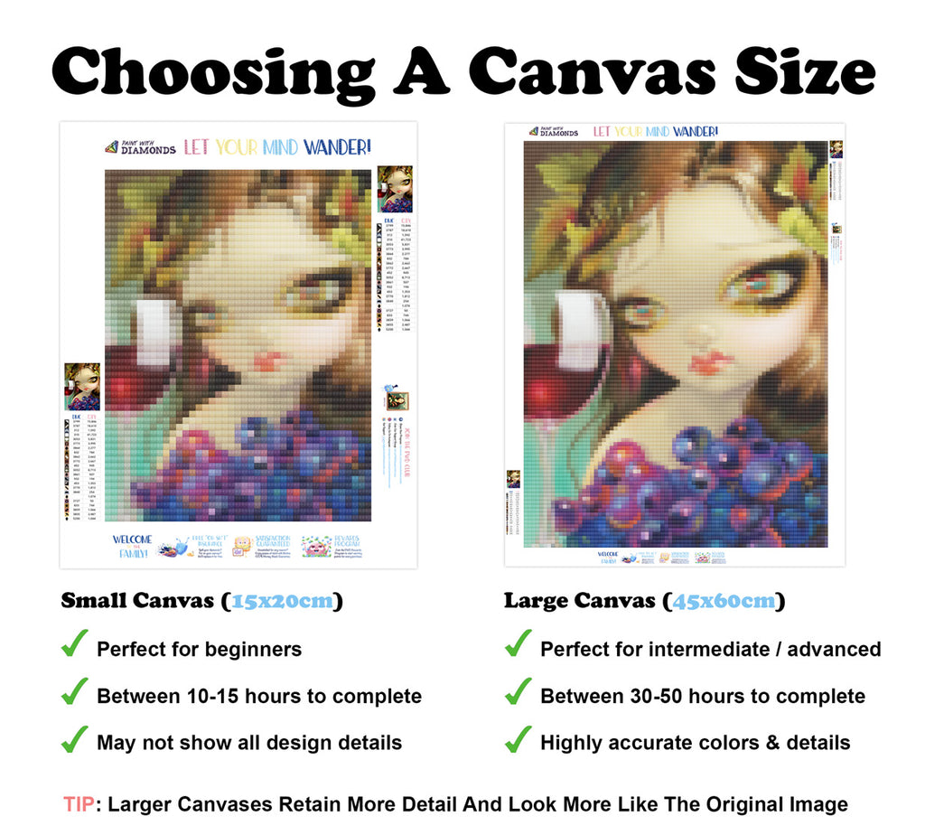 Escape into a world of vibrant colors and creative tranquility with the ‘Spirits Of The Vine Merlot’ Diamond Painting Kit. This exclusive full-drill design by artist Jasmine Becket-Griffith is available only at Paint With Diamonds. Let your mind unwind as you piece together shimmering diamonds to create a beautiful masterpiece.