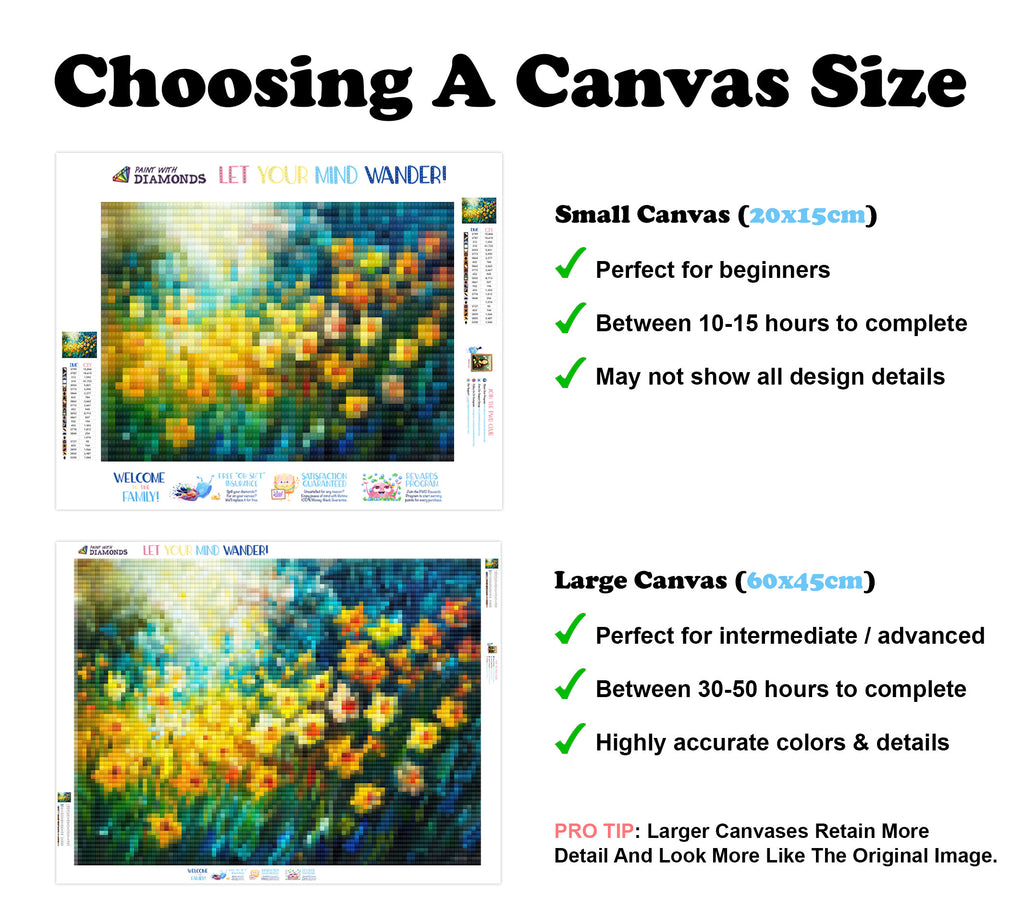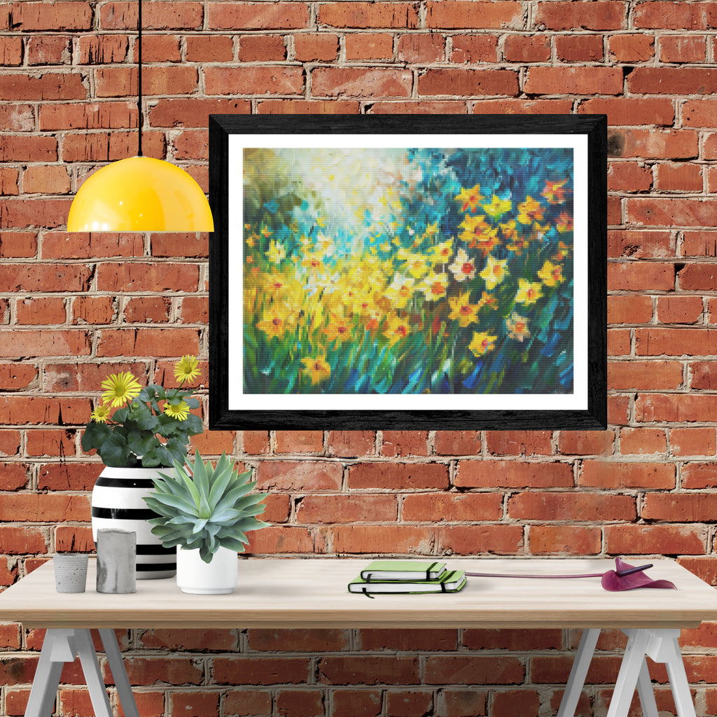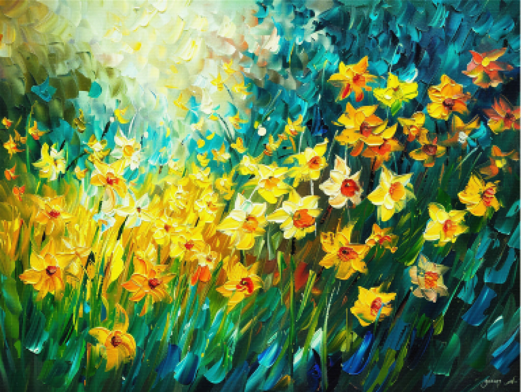 Escape into a world of vibrant colors and creative tranquility with the ‘Spring Daffodil Dance’ Diamond Painting Kit. This exclusive full-drill design by artist Caleb Smith is available only at Paint With Diamonds. Let your mind unwind as you piece together shimmering diamonds to create a beautiful masterpiece.
