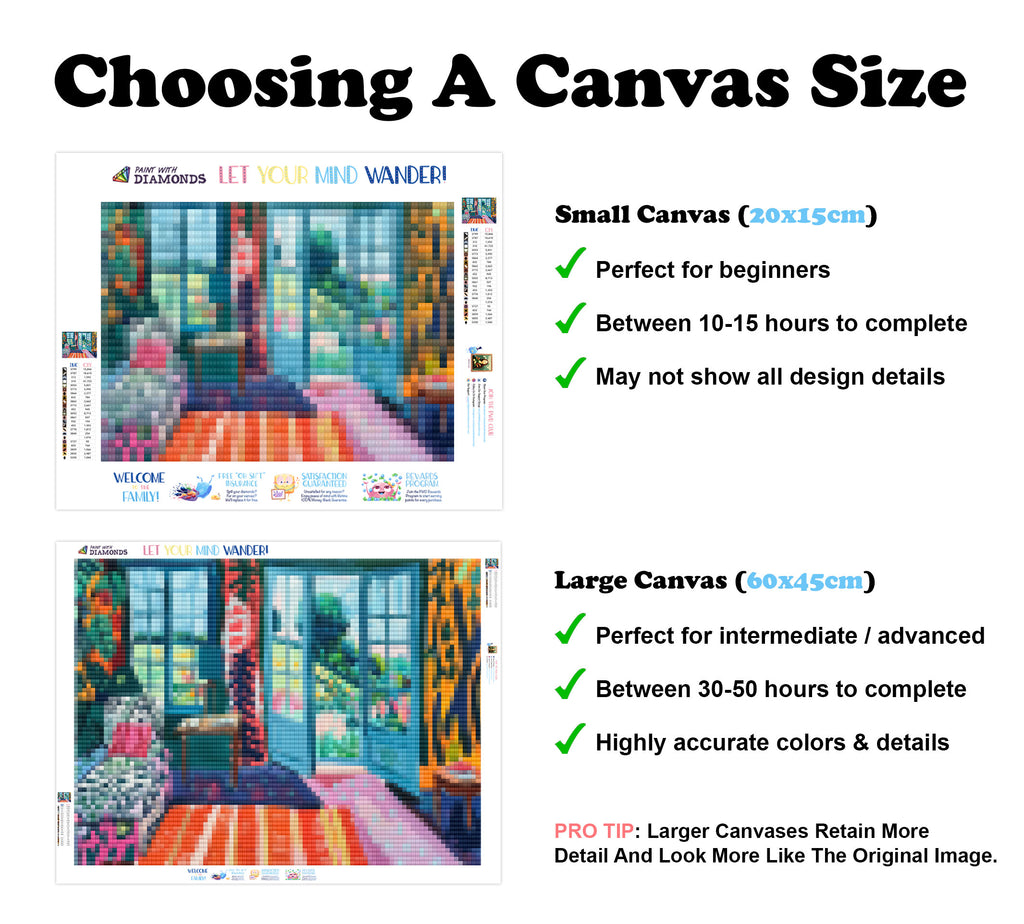Premium Quality Diamond Painting Kit: Includes a velvety-soft adhesive canvas, eco-friendly shimmering resin diamonds, and a premium toolkit - everything you ned to get started on your next masterpiece.