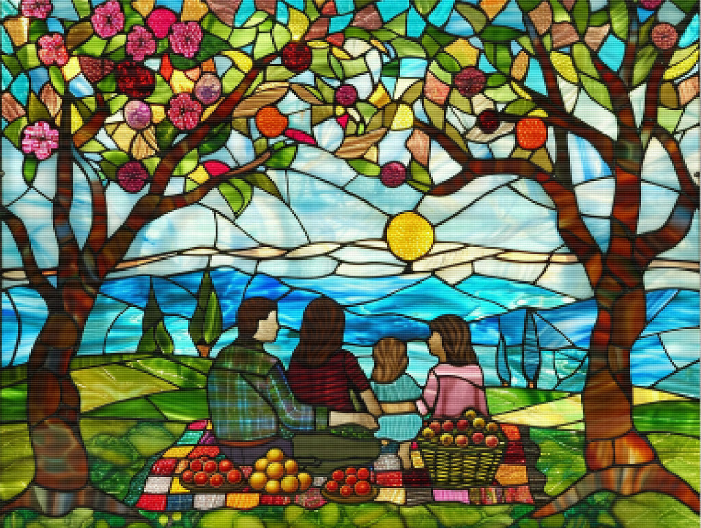 Ready to relax and create something beautiful? Add the 'Spring Picnic Stained Glass Scene Diamond Painting Kit to your cart today and start your journey to creative calm.