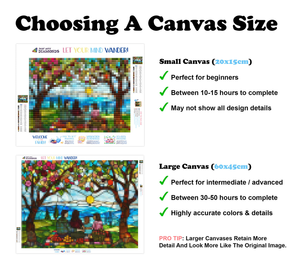 Premium Quality Diamond Painting Kit: Includes a velvety-soft adhesive canvas, eco-friendly shimmering resin diamonds, and a premium toolkit - everything you ned to get started on your next masterpiece.