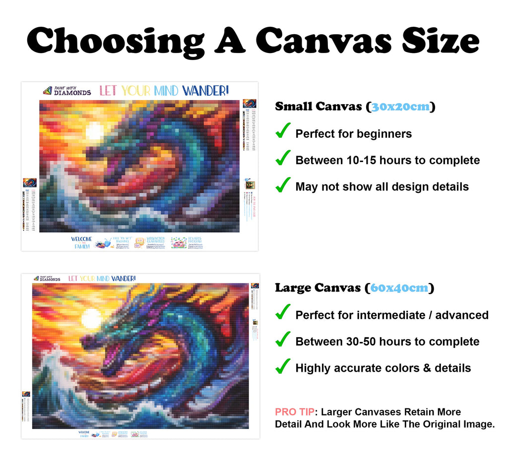 Premium Quality Diamond Painting Kit: Includes a velvety-soft adhesive canvas, eco-friendly shimmering resin diamonds, and a premium toolkit - everything you ned to get started on your next masterpiece.