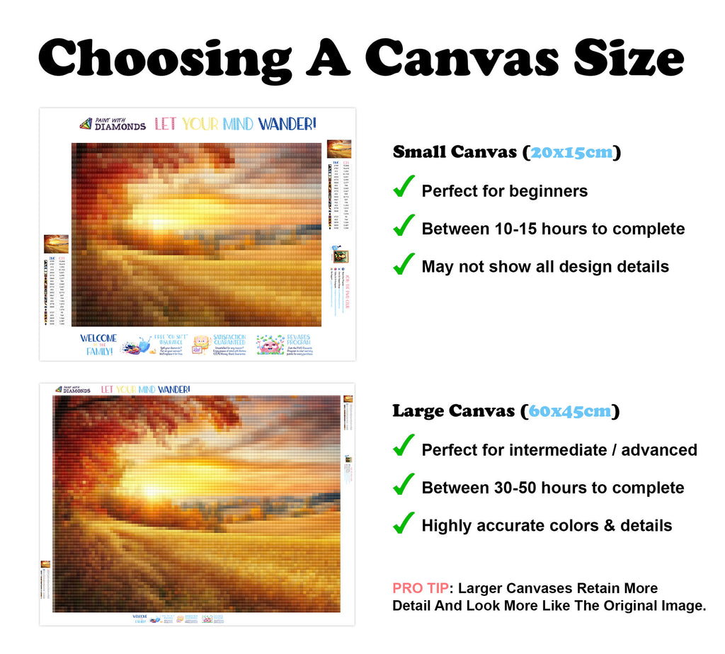 Escape into a world of vibrant colors and creative tranquility with the ‘Stunning Autumn Splendor’ Diamond Painting Kit. This exclusive full-drill design by artist Caleb Smith is available only at Paint With Diamonds. Let your mind unwind as you piece together shimmering diamonds to create a beautiful masterpiece.