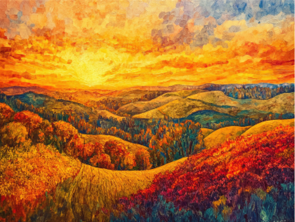 Escape into a world of vibrant colors and creative tranquility with the ‘Stunning Autumn Sunset Over Hills’ Diamond Painting Kit. This exclusive full-drill design by artist Caleb Smith is available only at Paint With Diamonds. Let your mind unwind as you piece together shimmering diamonds to create a beautiful masterpiece.