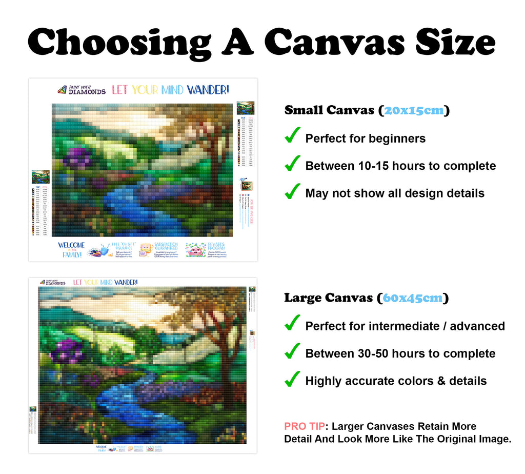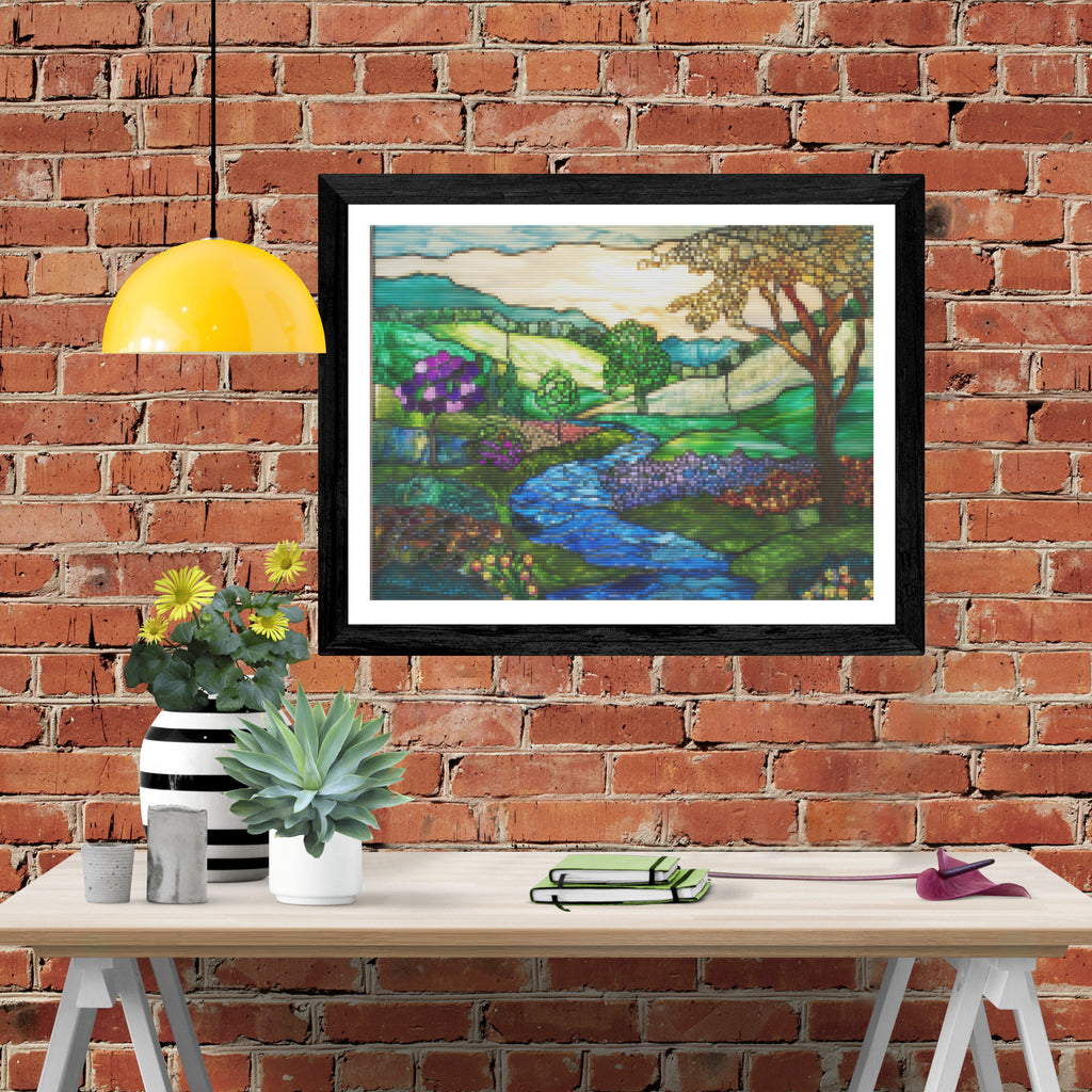 Escape into a world of vibrant colors and creative tranquility with the ‘Tiffany Spring Brook’ Diamond Painting Kit. This exclusive full-drill design by artist Caleb Smith is available only at Paint With Diamonds. Let your mind unwind as you piece together shimmering diamonds to create a beautiful masterpiece.