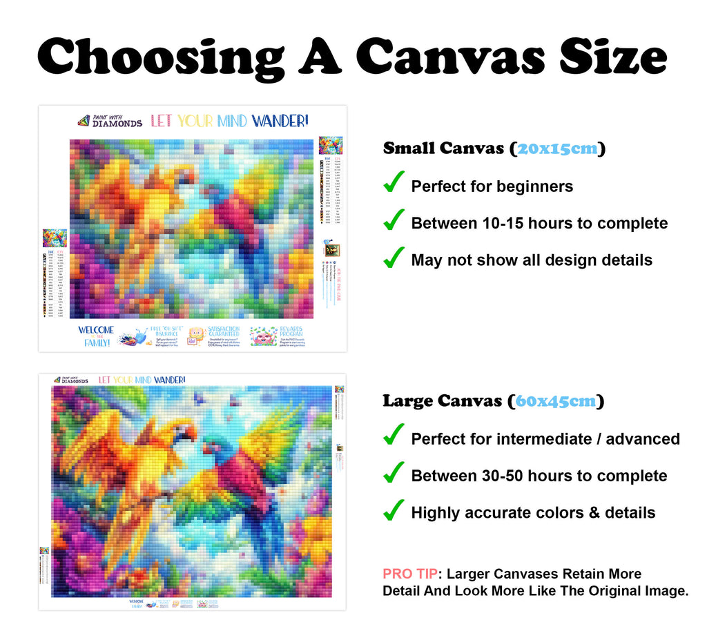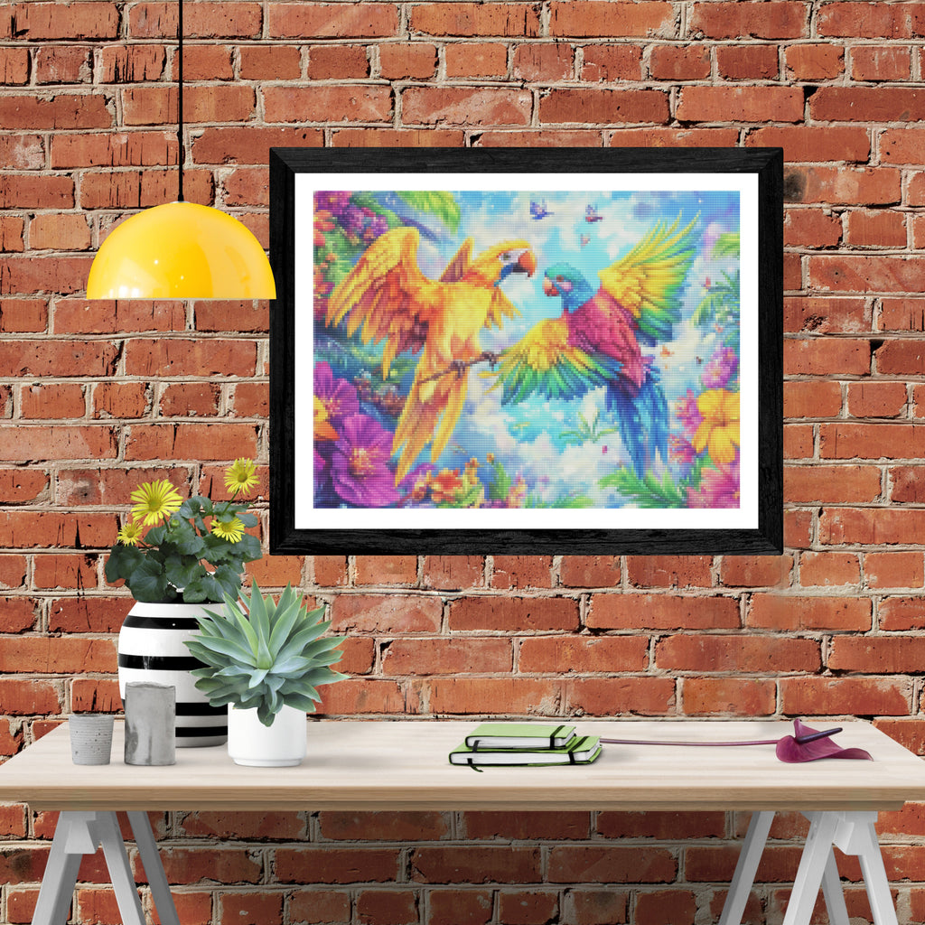 Escape into a world of vibrant colors and creative tranquility with the ‘Tropical Bird Paradise’ Diamond Painting Kit. This exclusive full-drill design by artist Caleb Smith is available only at Paint With Diamonds. Let your mind unwind as you piece together shimmering diamonds to create a beautiful masterpiece.