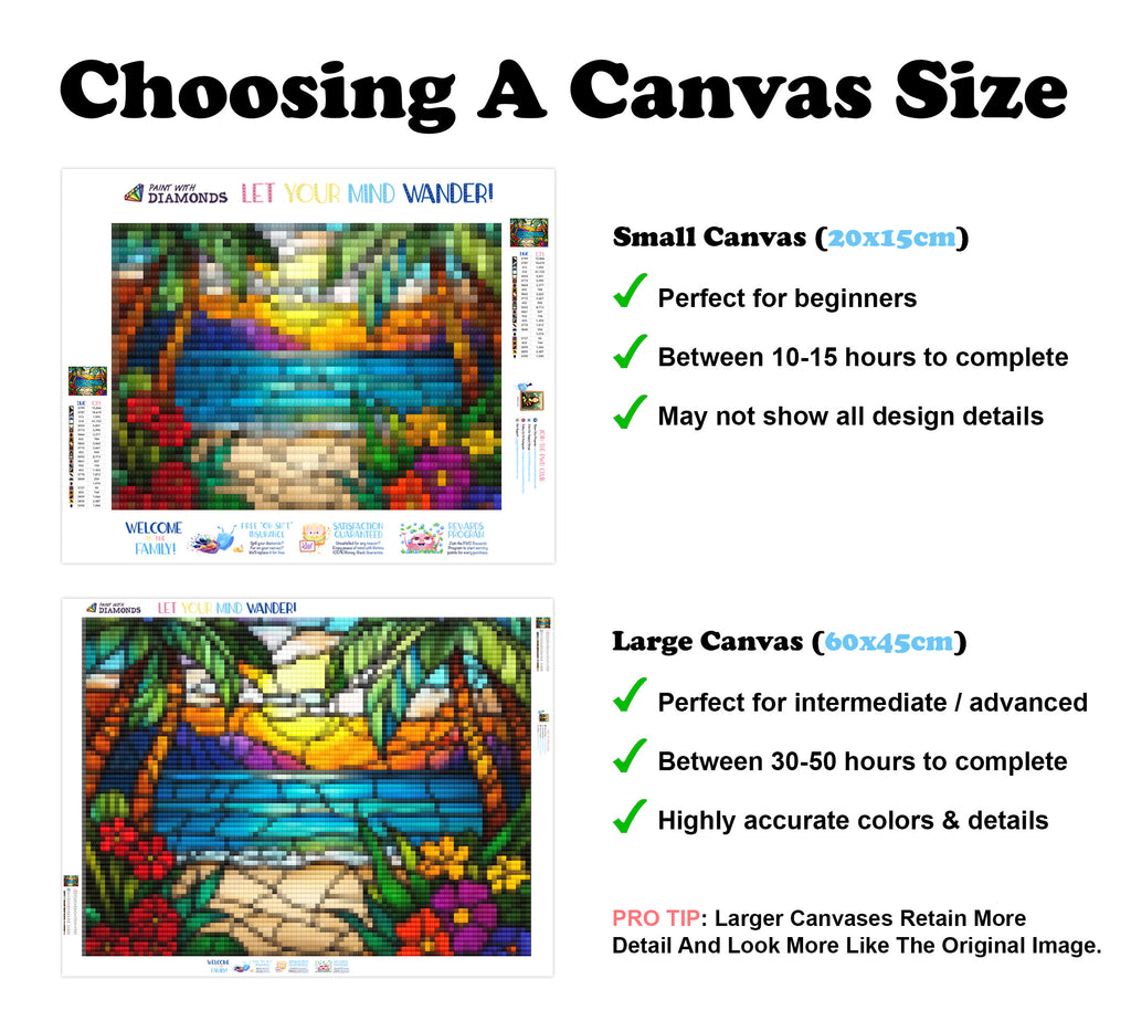 Premium Quality Diamond Painting Kit: Includes a velvety-soft adhesive canvas, eco-friendly shimmering resin diamonds, and a premium toolkit - everything you ned to get started on your next masterpiece.