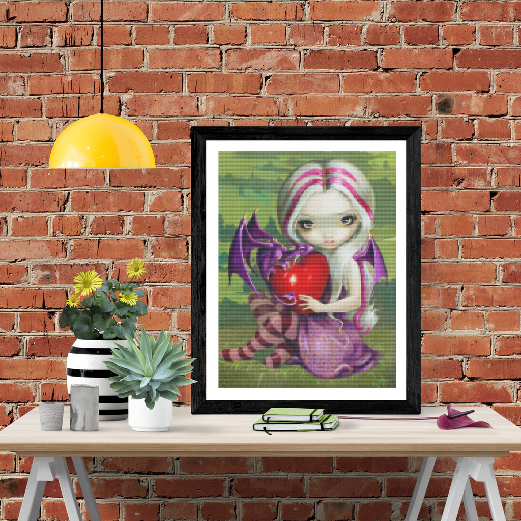 Escape into a world of vibrant colors and creative tranquility with the ‘Valentine Dragon’ Diamond Painting Kit. This exclusive full-drill design by artist Jasmine Becket-Griffith is available only at Paint With Diamonds. Let your mind unwind as you piece together shimmering diamonds to create a beautiful masterpiece.