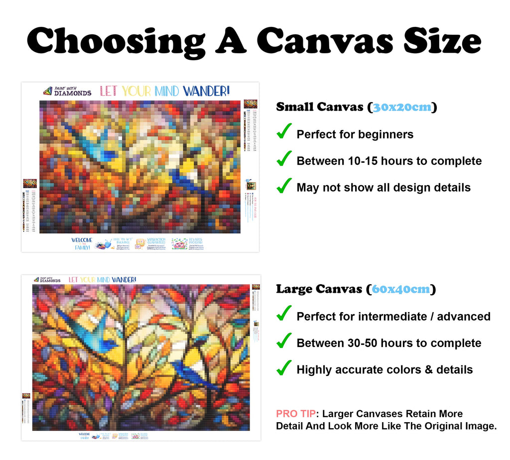 Hand-Poured Canvas Adhesive: Guaranteed to keep your diamonds securely in place for life, so your artwork will last for years to come.
