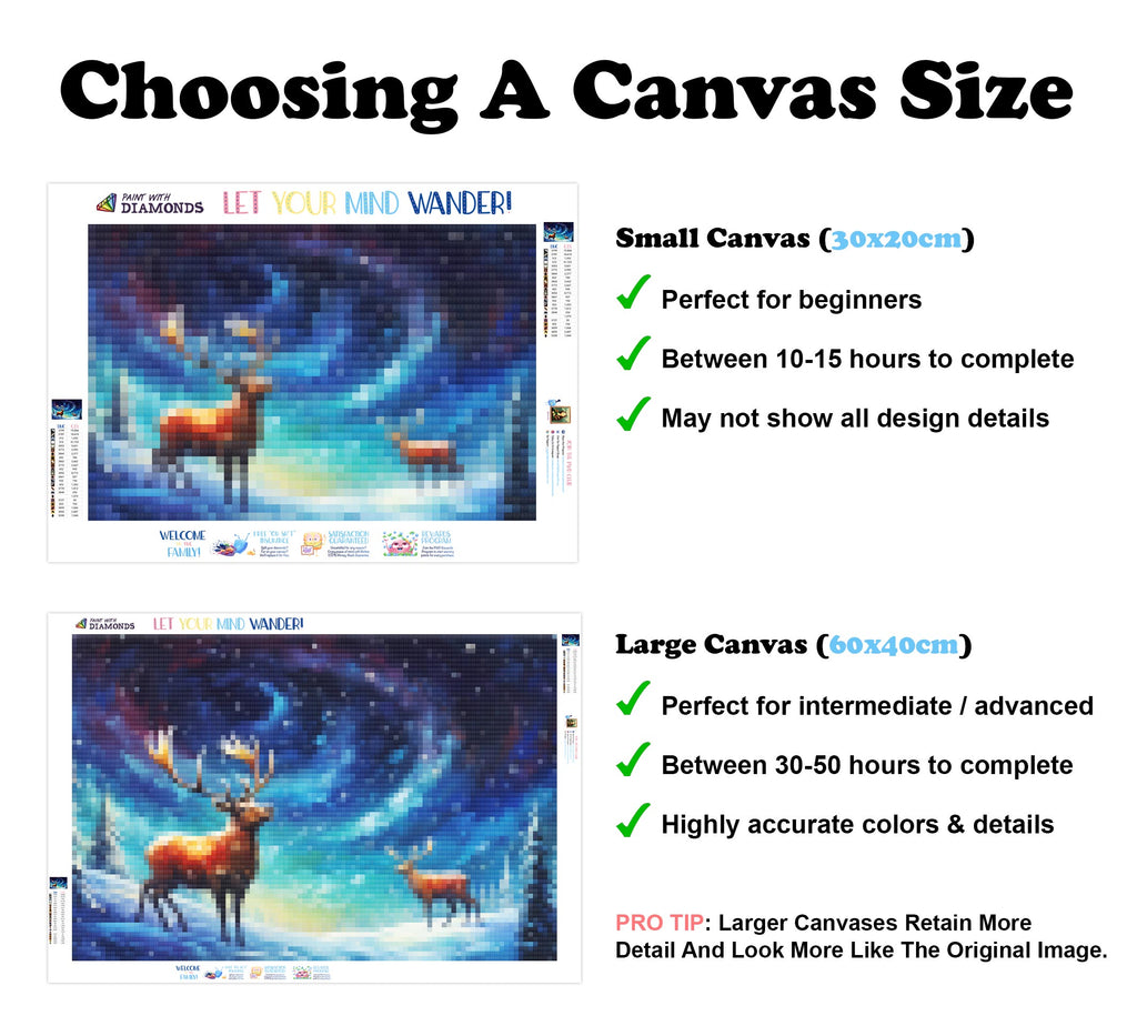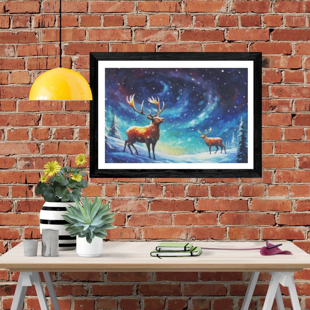 Escape into a world of vibrant colors and creative tranquility with the ‘Watchful Eyes Of Reindeer’ Diamond Painting Kit. This exclusive full-drill design by artist Caleb Smith is available only at Paint With Diamonds. Let your mind unwind as you piece together shimmering diamonds to create a beautiful masterpiece.