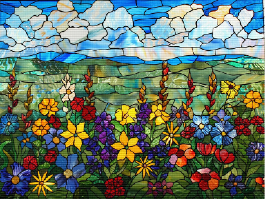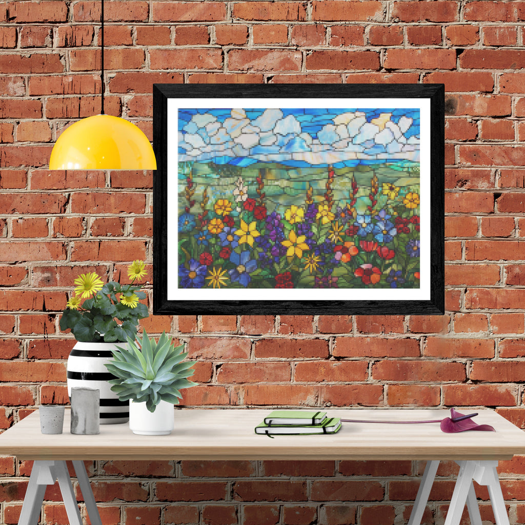 Ready to relax and create something beautiful? Add the 'Wildflower Field Stained Glass Panel Diamond Painting Kit to your cart today and start your journey to creative calm.