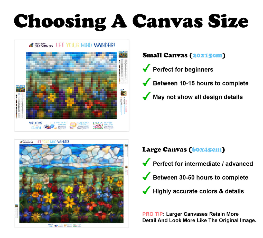 Premium Quality Diamond Painting Kit: Includes a velvety-soft adhesive canvas, eco-friendly shimmering resin diamonds, and a premium toolkit - everything you ned to get started on your next masterpiece.