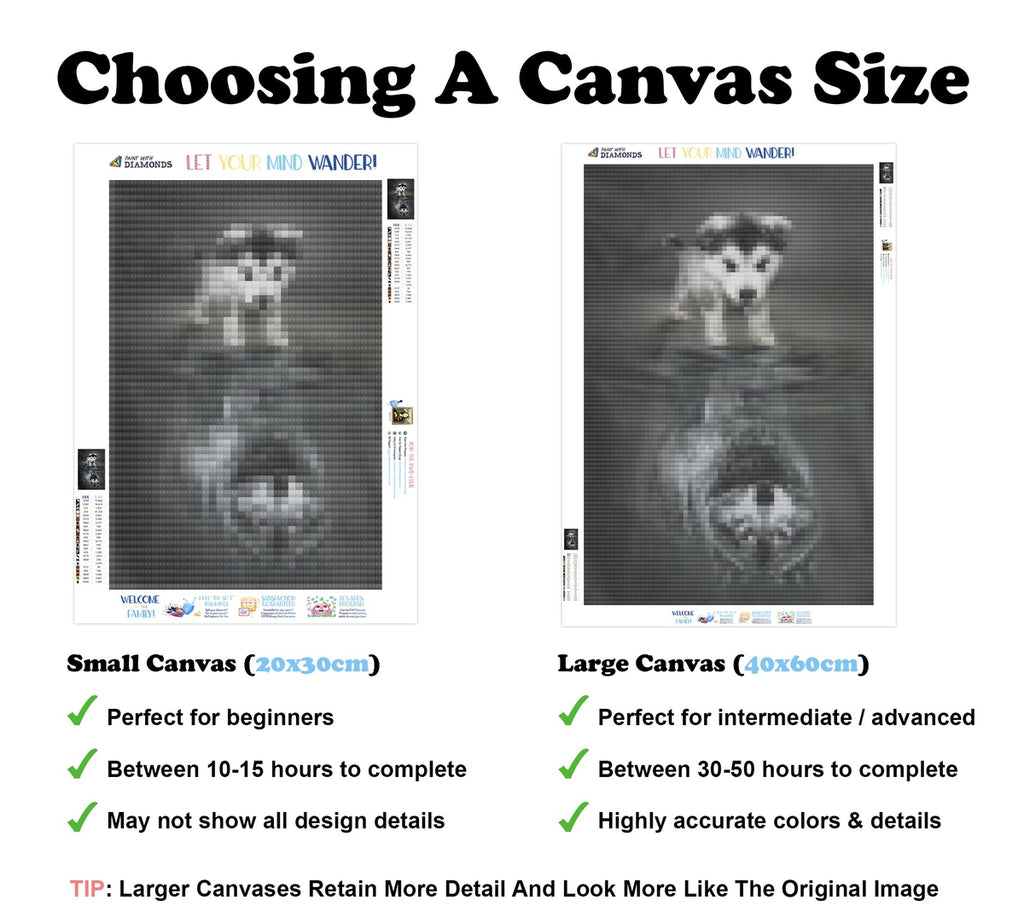 Dog walk on your canvas? Kids turn your diamonds into confetti? We'll replace your kit for free. Never cry over spilled diamonds.