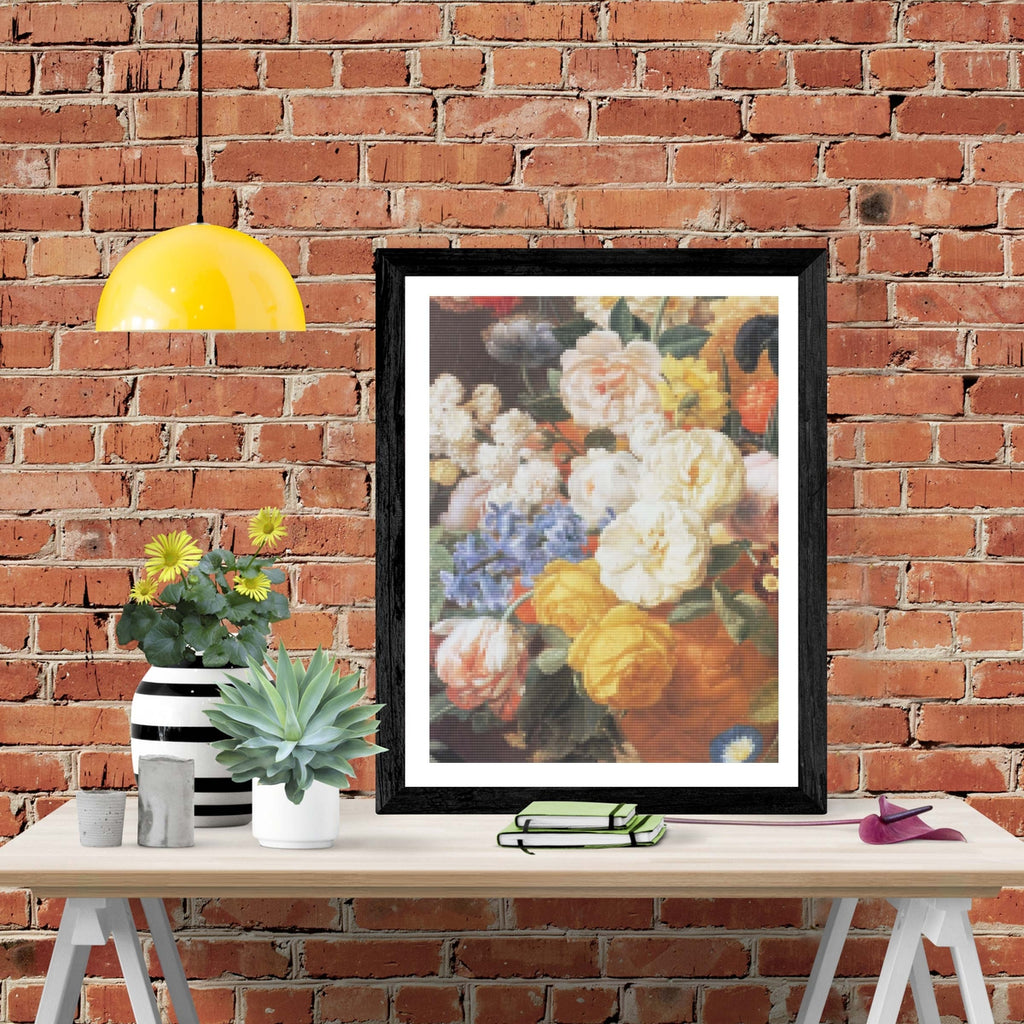 Create your own shimmering DIY wall art, one "diamond" at a time! This gorgeous full drill Diamond Painting Kit is entitled "Bouquet Of Flowers In A Sculpted Vase" and includes everything you need to get started!