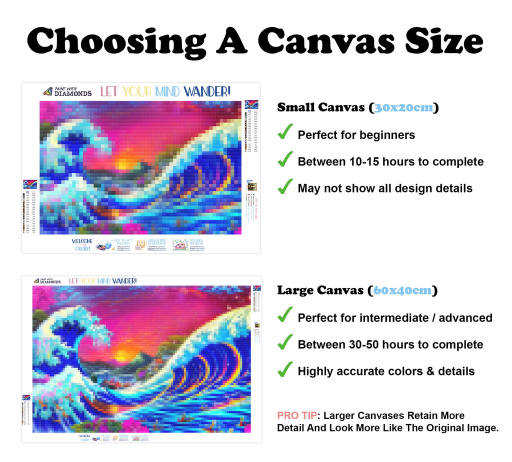 Escape into a world of vibrant colors and creative tranquility with the ‘Colorful Kanagawa’ Diamond Painting Kit. This exclusive full-drill design by artist Caleb Smith is available only at Paint With Diamonds. Let your mind unwind as you piece together shimmering diamonds to create a beautiful masterpiece.