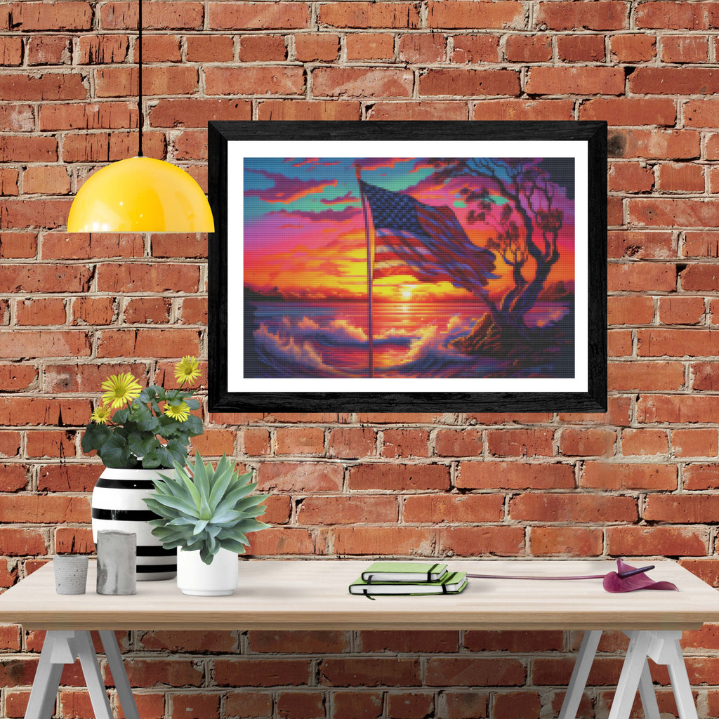 Escape into a world of vibrant colors and creative tranquility with the ‘American Flag Summer’ Diamond Painting Kit. This exclusive full-drill design by artist Caleb Smith is available only at Paint With Diamonds. Let your mind unwind as you piece together shimmering diamonds to create a beautiful masterpiece.
