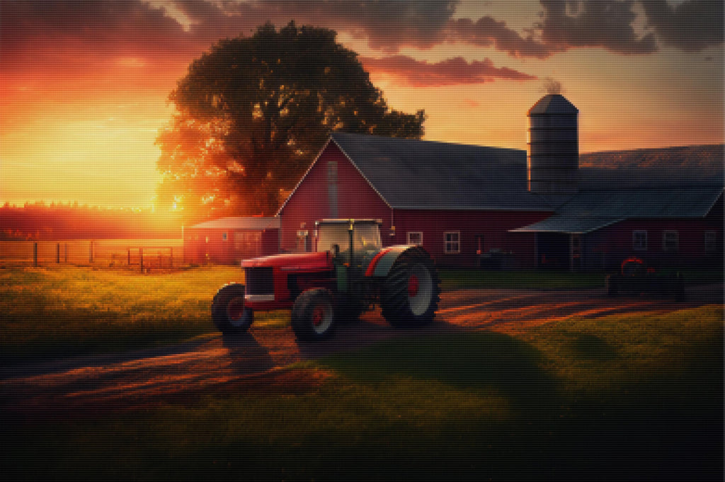 Ready to relax and create something beautiful? Add the 'Farm With Tractors And Barn Diamond Painting Kit to your cart today and start your journey to creative calm.
