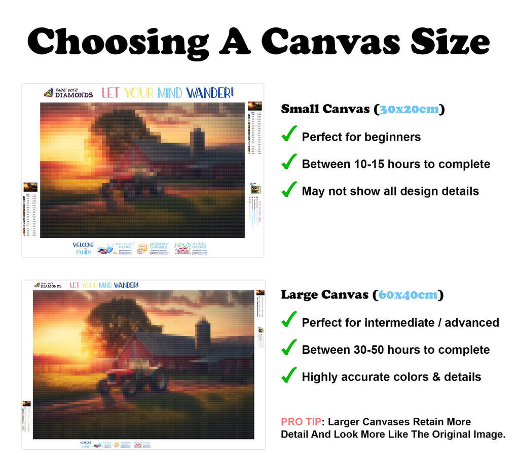 Escape into a world of vibrant colors and creative tranquility with the ‘Farm With Tractors And Barn’ Diamond Painting Kit. This exclusive full-drill design by artist Caleb Smith is available only at Paint With Diamonds. Let your mind unwind as you piece together shimmering diamonds to create a beautiful masterpiece.