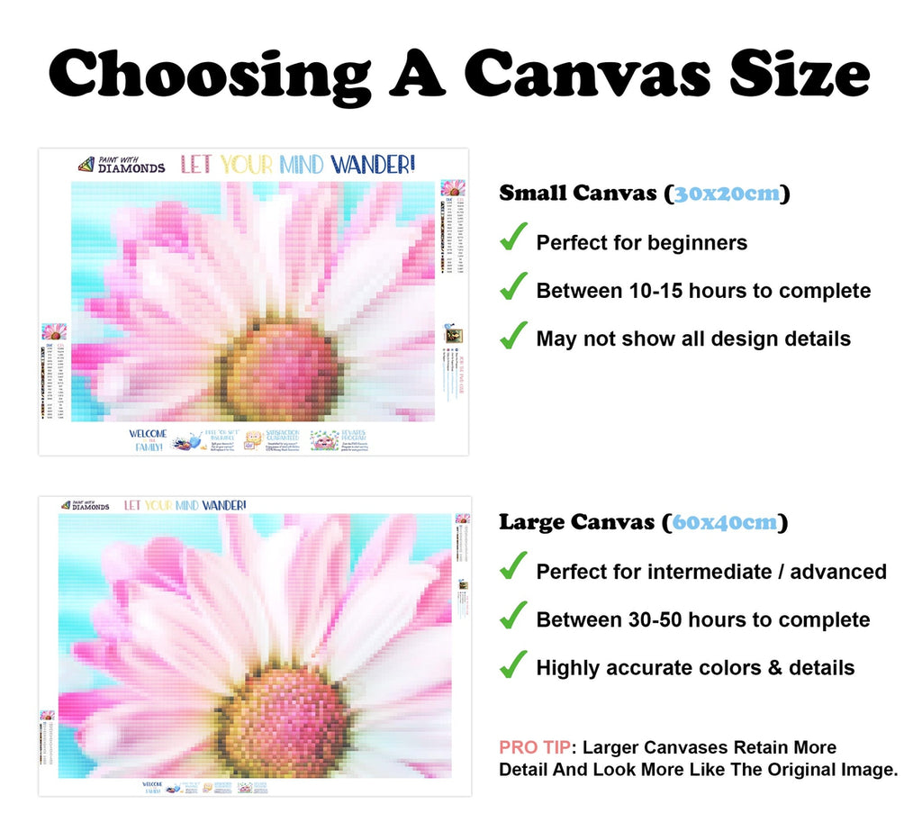 PREMIUM DIAMOND PAINTING KIT: Official Diamond Art kit includes 1x stay-flat adhesive canvas, 1x set of shimmering eco-friendly resin diamonds, and 1x premium toolkit. Diamonds cover the whole canvas.