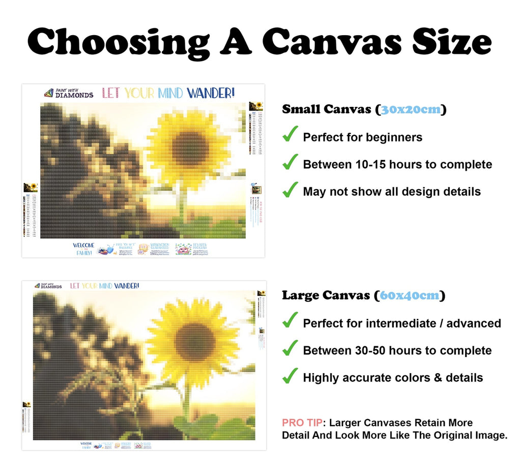 PREMIUM DIAMOND PAINTING KIT: Official Diamond Art kit includes 1x stay-flat adhesive canvas, 1x set of shimmering eco-friendly resin diamonds, and 1x premium toolkit. Diamonds cover the whole canvas.