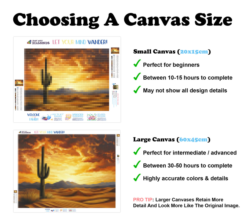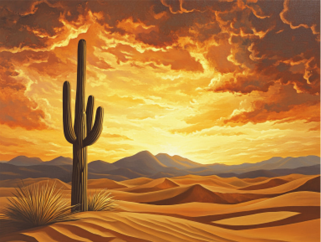 Escape into a world of vibrant colors and creative tranquility with the ‘Golden Desert Evening’ Diamond Painting Kit. This exclusive full-drill design by artist Gavin Price is available only at Paint With Diamonds. Let your mind unwind as you piece together shimmering diamonds to create a beautiful masterpiece.