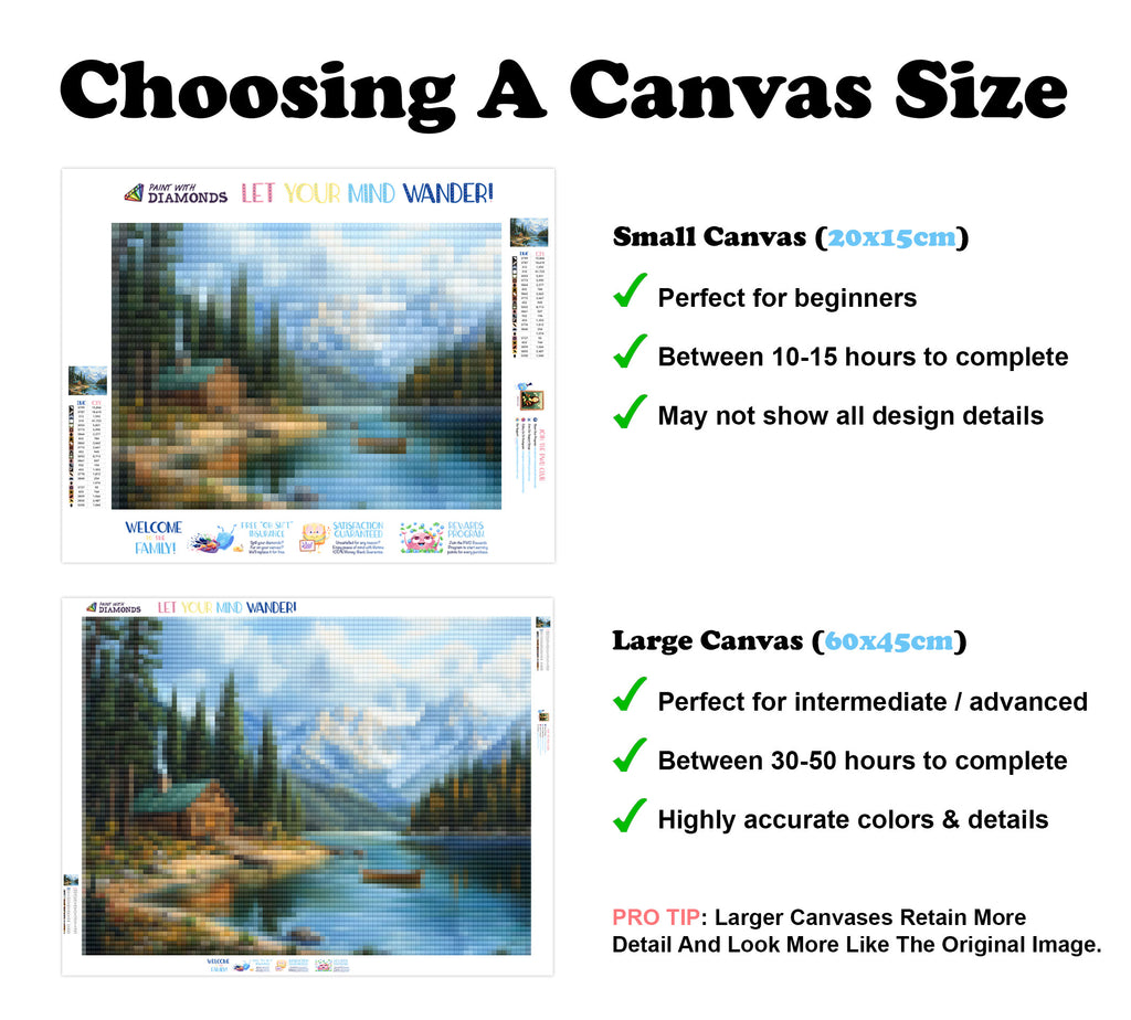 Escape into a world of vibrant colors and creative tranquility with the ‘Mountain Lake Retreat’ Diamond Painting Kit. This exclusive full-drill design by artist Gavin Price is available only at Paint With Diamonds. Let your mind unwind as you piece together shimmering diamonds to create a beautiful masterpiece.