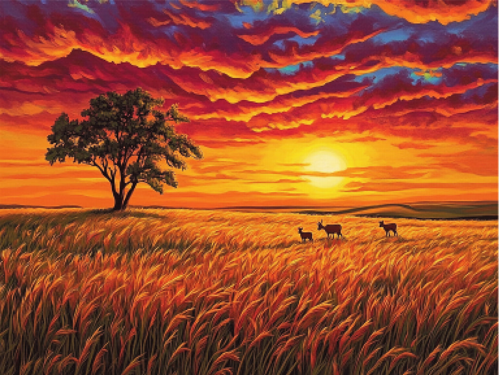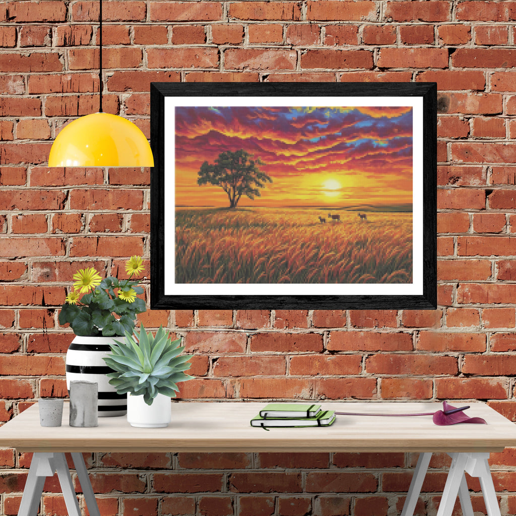 Escape into a world of vibrant colors and creative tranquility with the ‘Sunset on the Prairie’ Diamond Painting Kit. This exclusive full-drill design by artist Gavin Price is available only at Paint With Diamonds. Let your mind unwind as you piece together shimmering diamonds to create a beautiful masterpiece.
