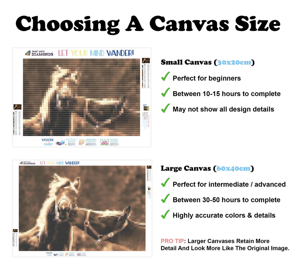 Relax, unwind, and create Diamond Art! "Innocent Horse Romance" is now available at Paint With Diamonds® as a full-drill Diamond Painting Kit in your choice of Round or Square diamonds.