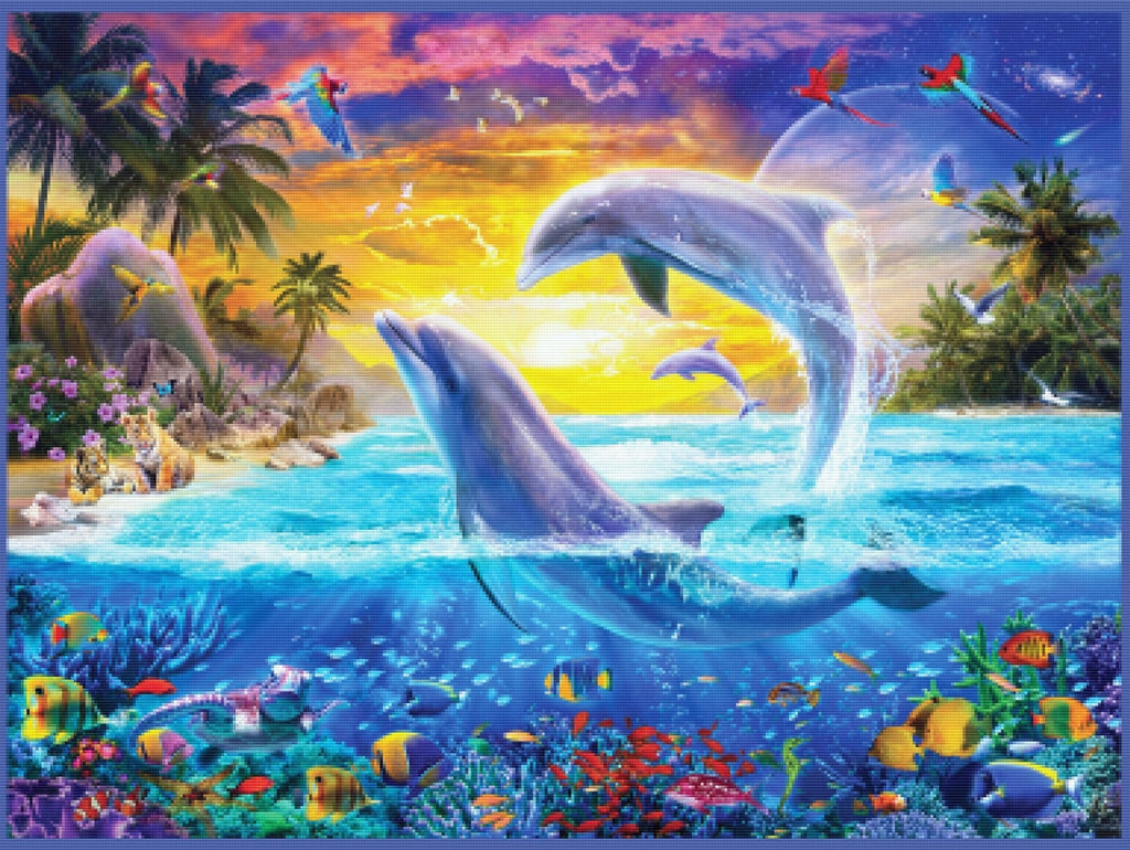 Relax, unwind, and create Diamond Art! "Dolphins And Tiger Cubs" by artist Jan Patrik Krasny is now available exclusively at Paint With Diamonds® as a full-drill Diamond Painting Kit in your choice of Round or Square diamonds.