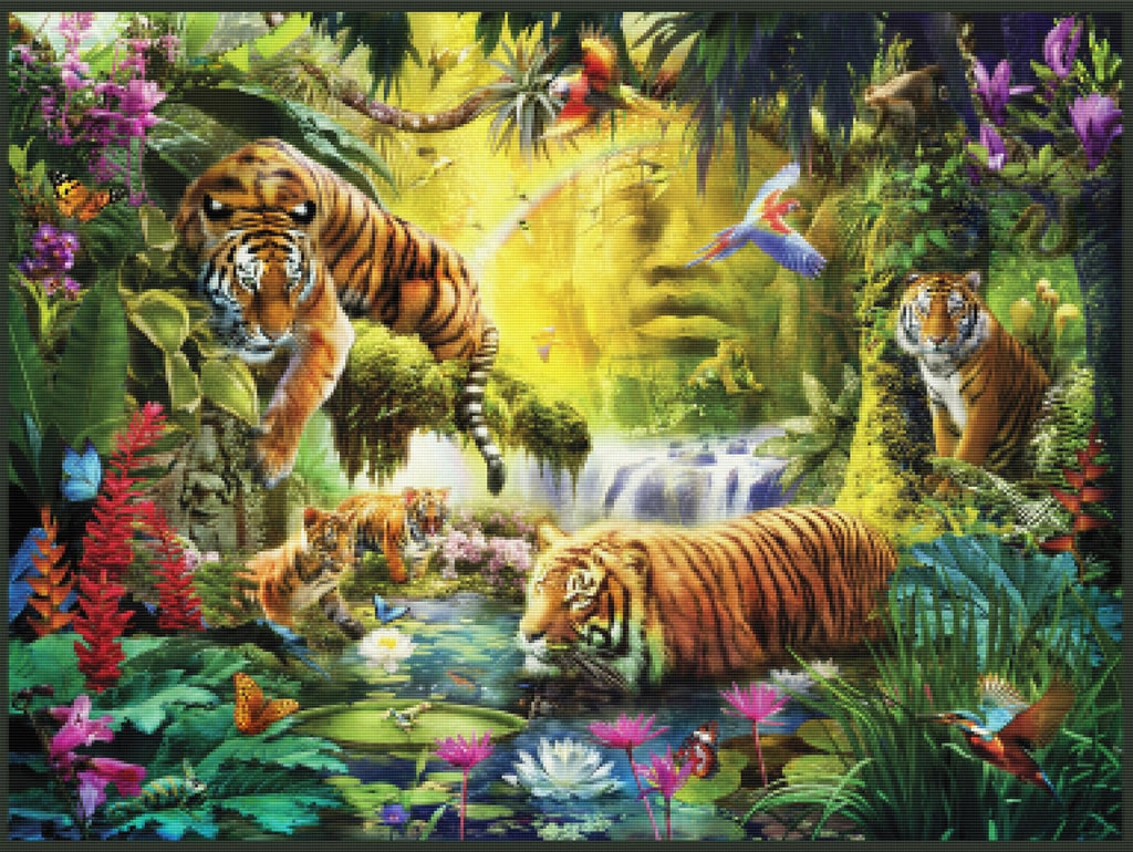 Relax, unwind, and create Diamond Art! "Tigers Paradise" by artist Jan Patrik Krasny is now available exclusively at Paint With Diamonds® as a full-drill Diamond Painting Kit in your choice of Round or Square diamonds.